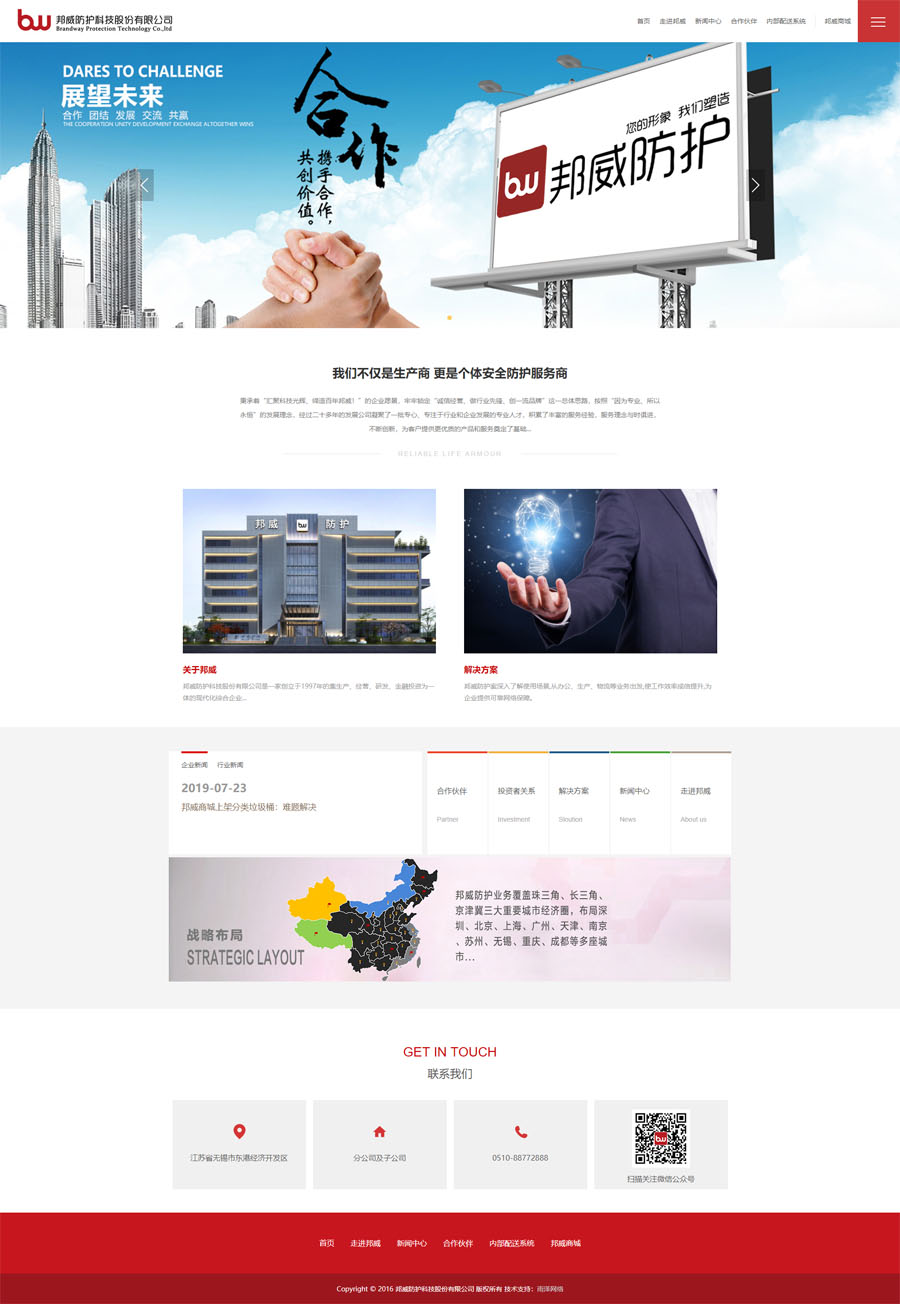 邦威防護科技股份有限公司創(chuàng)立于1997年,是一家專注于個體防護裝備產(chǎn)品生產(chǎn)、經(jīng)營、研發(fā)于一體的現(xiàn)代化綜合型企業(yè)。公司長期服務于國有大型企業(yè)、行業(yè)單位等,主要客戶包括電力、石油石化、通信、煙草、礦產(chǎn)冶金、交通運輸、郵政快遞、鐵路、機械制造和總后軍需等,截止目前使用過我們產(chǎn)品和服務的人員已達到億人以上。