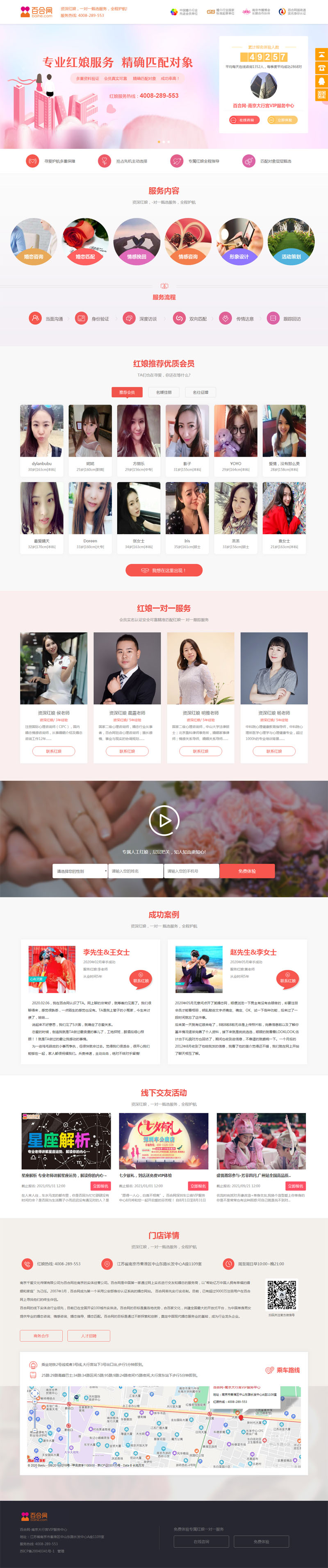 百合網(wǎng)的線下實體店行業(yè)領(lǐng)先,目前已在全國開設(shè)100城市實體店。百合網(wǎng)的目標(biāo)是集各地優(yōu)勢,合百家文化,共建全國最大的開放式平臺,為中國單身男女提供專業(yè)的婚戀咨詢、情感咨詢、婚戀指導(dǎo)、婚戀匹配。百合網(wǎng)的目標(biāo)是通過不斷探索和創(chuàng)新,奠定中國現(xiàn)代婚戀服務(wù)業(yè)的基礎(chǔ),成為行業(yè)龍頭企業(yè)。