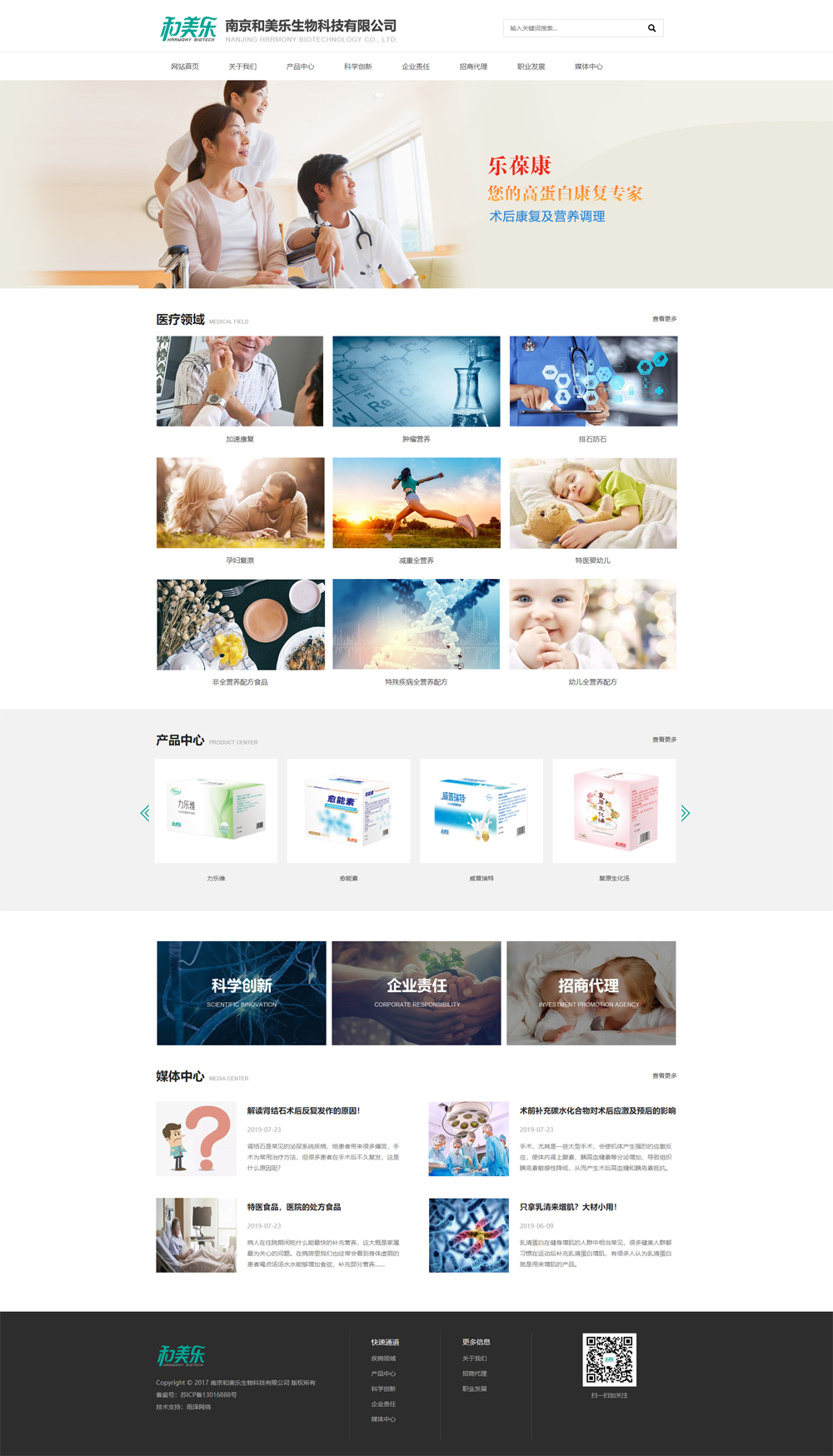 南京和美樂生物科技有限公司是一家以研發(fā)和生產(chǎn)營(yíng)養(yǎng)保健食品、特殊膳食、特殊醫(yī)學(xué)用途配方食品為主的新型生物技術(shù)有限公司。公司秉承食品安全與營(yíng)養(yǎng)健康的理念,擁有資深學(xué)術(shù)專家引領(lǐng)的專業(yè)研發(fā)團(tuán)隊(duì)以及符合食品安全良好生產(chǎn)質(zhì)量管理規(guī)范(GMP)的生產(chǎn)車間,與國(guó)內(nèi)外權(quán)威學(xué)術(shù)機(jī)構(gòu)深度合作,自主研發(fā)與創(chuàng)新,成為一家具有自主知識(shí)產(chǎn)權(quán)特色的專業(yè)生產(chǎn)特殊醫(yī)學(xué)用途食品和特殊膳食食品的優(yōu)良制造商,立志躋身于營(yíng)養(yǎng)類食品國(guó)際品牌行列。公司關(guān)注科學(xué)營(yíng)養(yǎng)與營(yíng)養(yǎng)輔助治療的領(lǐng)域,致力于孕產(chǎn)婦、嬰幼兒、中老年等特定生理時(shí)期及特定疾病狀態(tài)人群,提供科學(xué)有效的營(yíng)養(yǎng)解決方案。