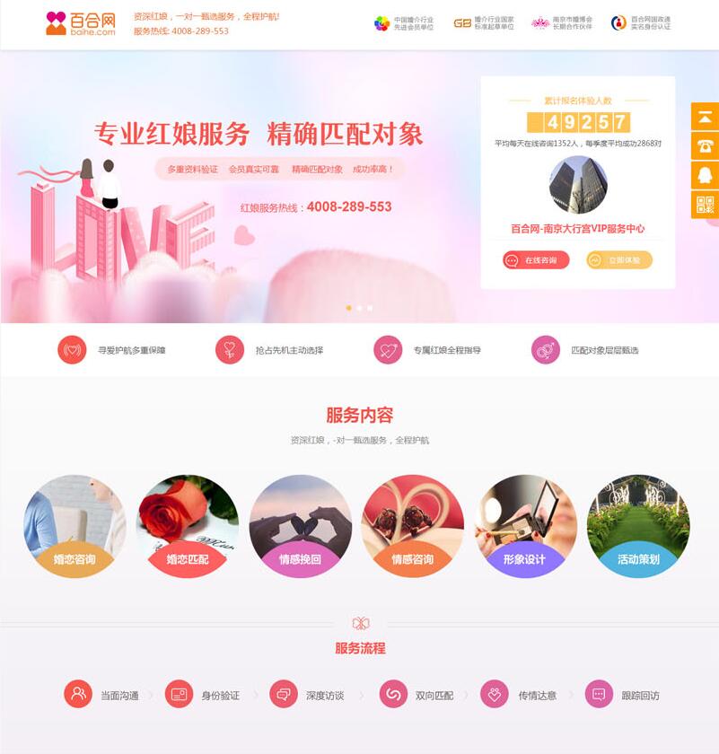 百合網(wǎng)的線下實(shí)體店行業(yè)領(lǐng)先,目前已在全國開設(shè)100城市實(shí)體店。百合網(wǎng)的目標(biāo)是集各地優(yōu)勢,合百家文化,共建全國最大的開放式平臺,為中國單身男女提供專業(yè)的婚戀咨詢、情感咨詢、婚戀指導(dǎo)、婚戀匹配。百合網(wǎng)的目標(biāo)是通過不斷探索和創(chuàng)新,奠定中國現(xiàn)代婚戀服務(wù)業(yè)的基礎(chǔ),成為行業(yè)龍頭企業(yè)。